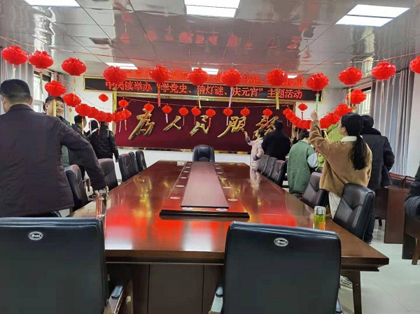 在鎮(zhèn)三樓會議室,猜燈謎,慶佳節(jié),活動如火如荼地進行。一排排彩色字條上印著不同的謎語,燈謎的內(nèi)容涉及中國共產(chǎn)黨黨史、歷史人物、成語、字謎等多領(lǐng)域知識,涉及面廣,內(nèi)容豐富。趣味燈謎吸引了全鎮(zhèn)黨員干部積極踴躍參加,大家在燈謎面前,有的苦思冥想,有的喜上眉梢,有的互相交流討論,場面十分熱鬧。