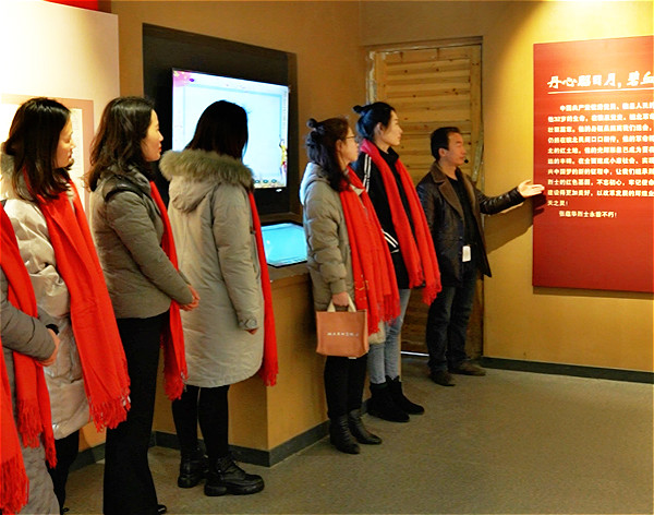 在紀念館外的廣場上,全體女性組工干部集體佩戴黨徽,瞻仰張?zhí)N華烈士雕像,隨后面向黨旗,舉起右手,舉行了重溫入黨誓詞儀式。在紀念館內,女同志們跟隨解說員的步伐,伴隨著館內聲、光、電的再現,仿佛置身于那段燃燒著激情和熱血的歲月里。聆聽著解說員的激情講述,女同志們紛紛動容,對皖北早期共產黨組織和張?zhí)N華的英勇事跡有了更深刻的認識。