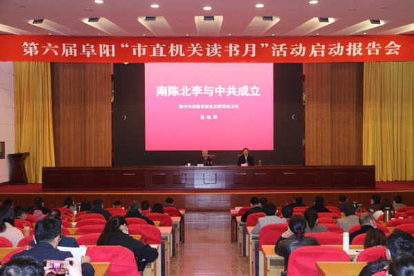 日前,第六屆阜陽“市直機關讀書月”活動啟動報告會舉行,邀請省委宣講團成員、原省委黨史研究室主任聶皖輝作專題輔導報告。報告會由市直工委書記李濤主持。市直及中央、省駐阜單位直屬黨組織負責人,黨務工作者代表,市直微宣講團成員,市直工委全體黨員干部近200人參加報告會。