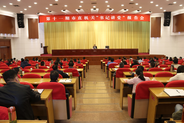 4月15日上午,市直工委在市政府一樓會議室舉辦第十一期市直機(jī)關(guān)“書記講堂”報告會,市直工委書記李濤同志做黨史學(xué)習(xí)教育專題報告會。市直工委副書記劉振主持,市直及中央和省駐阜直屬黨組織書記,黨員干部代表,市直微宣講團(tuán)成員,市直工委黨員干部近200人參加了報告會。