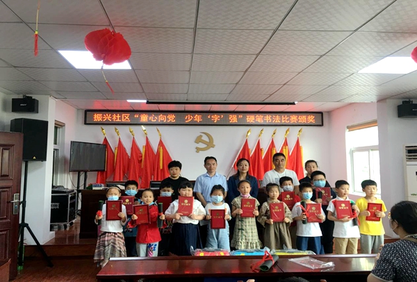 潁西街道振興社區(qū)《童心向黨 少年“字”強》硬筆書法比賽頒獎現(xiàn)場