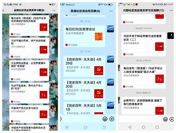 二、創(chuàng)新學(xué)習(xí)形式,讓流動黨員“流動不流學(xué)”。依據(jù)前期對流動黨員不同層面、不同領(lǐng)域的“把脈”、根據(jù)流動黨員黨史教育需求多元的實際,探索“互聯(lián)網(wǎng)+黨史學(xué)習(xí)教育”模式,用好新媒體平臺,“打包組裝”黨史教育資源,為流動黨員提供“菜單式”教育服務(wù)。一是通過建立流動黨員微信群、QQ群,常態(tài)化推送黨史知識,黨史故事928條,打造“流動中的陣地”“指尖上的課堂”;二是依托“潁州先鋒”微信公眾號開設(shè)“黨史百年天天讀”“百年百歌”專欄,建立“流動黨史學(xué)習(xí)站”,讓流動黨員有學(xué)習(xí)黨史的去處、相互交流的平臺;三是利用學(xué)習(xí)強國、微信視頻會議功能組織流動黨員開展集中學(xué)習(xí)、研討38次,提升黨史教育的“滲透力”,讓流動黨員堅定理想信念,增強本領(lǐng)。