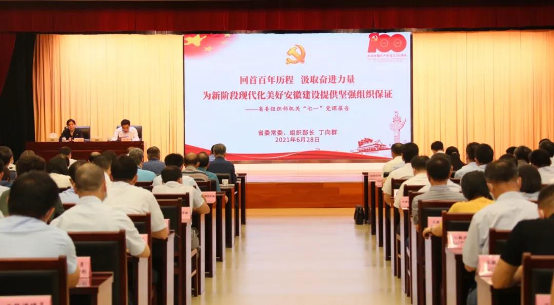 6月28日,省委組織部召開部機關黨史學習教育專題黨課報告會。省委常委、組織部長丁向群出席并作專題黨課報告。