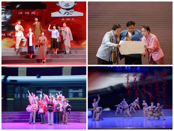 藝術黨課環(huán)節(jié),省話劇院的創(chuàng)作團隊帶來的舞臺劇《百年的記憶》通過“開天辟地”“改天換地”“翻天覆地”“驚天動地”等四個章節(jié),結合我省紅色資源和相關歷史事件,以情景朗誦、情境表演的形式,生動地再現了100年來中國共產黨帶領人民進行革命、建設、改革開放以及奮進新時代所走過的紅色足跡與光輝歷程,為現場觀眾帶來了一場高雅的藝術享受和一次深刻的心靈洗禮。演出精彩紛呈,現場高潮迭起,臺下觀眾喝彩不斷。