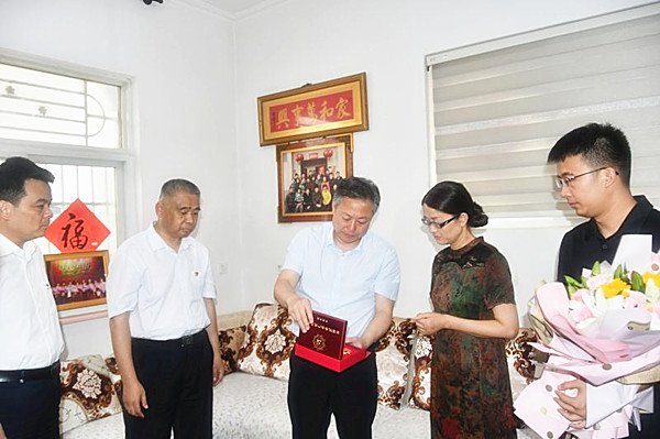 7月10日上午,市委常委、組織部部長(zhǎng)、統(tǒng)戰(zhàn)部部長(zhǎng)王朝暉到臨泉縣看望黨員吳瑞武家屬,并頒發(fā)中共中央追授吳瑞武同志“全國(guó)優(yōu)秀共產(chǎn)黨員”的榮譽(yù)證書和獎(jiǎng)?wù)隆?/span>