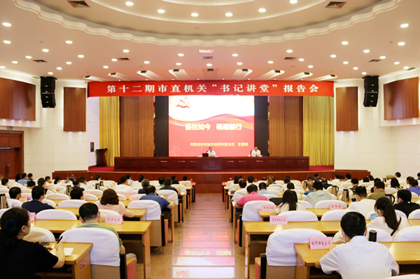 近日,市直工委在市政府一樓會(huì)議室舉辦第十二期阜陽市直機(jī)關(guān)“書記講堂”報(bào)告會(huì),邀請(qǐng)市委黨史和地方志研究室主任王顯明同志做報(bào)告。市直工委書記李濤主持報(bào)告會(huì)。市直及中央和省駐阜直屬黨組織負(fù)責(zé)人、黨務(wù)干部、市委黨史和地方志研究室黨員干部、市直理論宣講團(tuán)成員、市直工委黨員干部近200人參加了報(bào)告會(huì)。