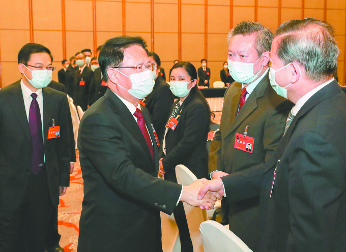 10月26日下午,省委書記鄭柵潔來到省第十一次黨代會代表團(tuán)駐地,看望出席大會的代表。本報(bào)記者 徐國康 攝