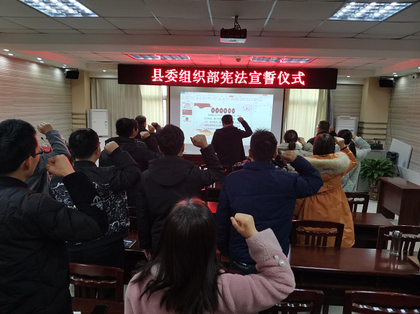 在第八個(gè)國(guó)家憲法日來(lái)臨之際,為進(jìn)一步弘揚(yáng)憲法精神,樹立憲法權(quán)威,增強(qiáng)廣大黨員干部的法治觀念,日前,臨泉縣委組織部組織開展了2021年國(guó)家憲法日憲法宣講暨憲法宣誓活動(dòng)。