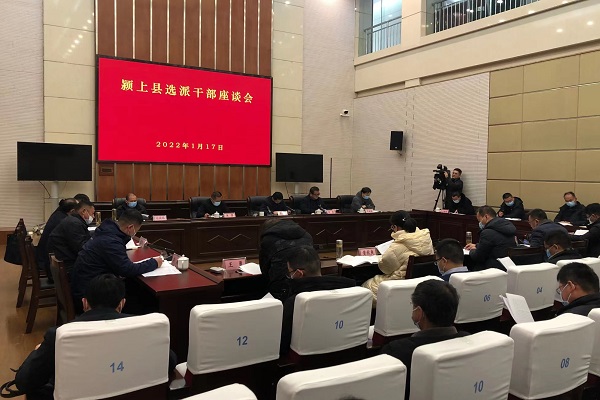 1月17日,潁上縣召開選派干部座談會(huì)。潁上縣委常委、縣委組織部部長(zhǎng)郭穎升出席會(huì)議并講話,省、市、縣有關(guān)單位選派第一書記、駐村工作隊(duì)長(zhǎng)參加會(huì)議。