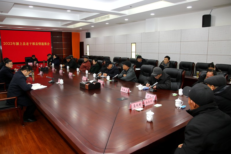 近日,潁上縣委書記張銀軍主持召開2022年潁上縣老干部縣情通報會??h委常委、常務(wù)副縣長虢磊,縣委常委、縣委組織部部長郭穎升出席會議。