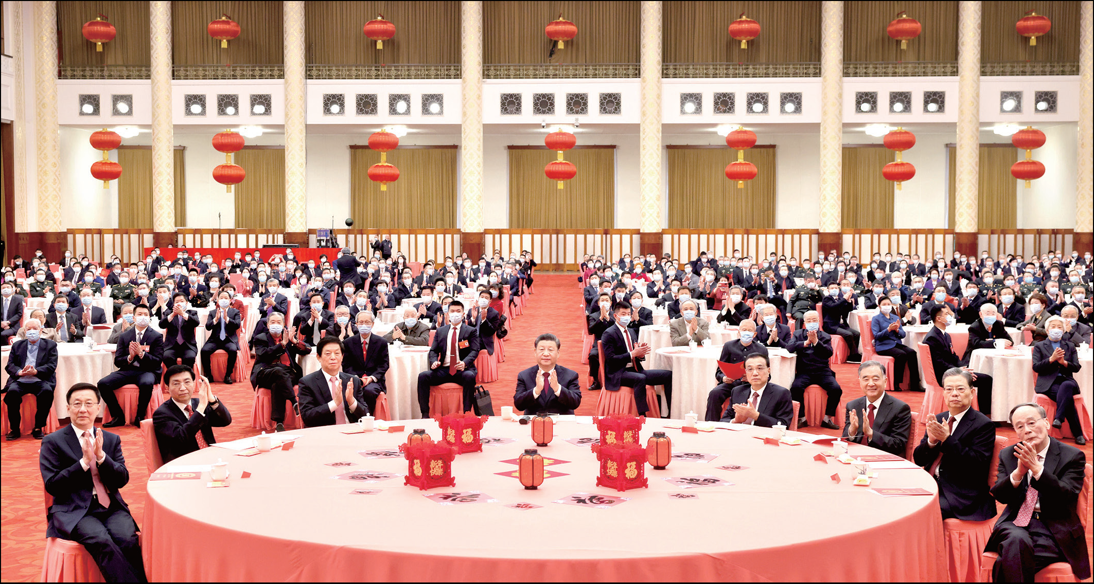 1月30日,中共中央、國務院在北京人民大會堂舉行2022年春節(jié)團拜會。黨和國家領導人習近平、李克強、栗戰(zhàn)書、汪洋、王滬寧、趙樂際、韓正、王岐山等同首都各界人士歡聚一堂,共迎新春。新華社記者 黃敬文 攝