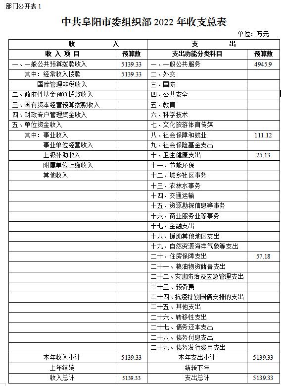 1.中共阜陽(yáng)市委組織部2022年收支總表