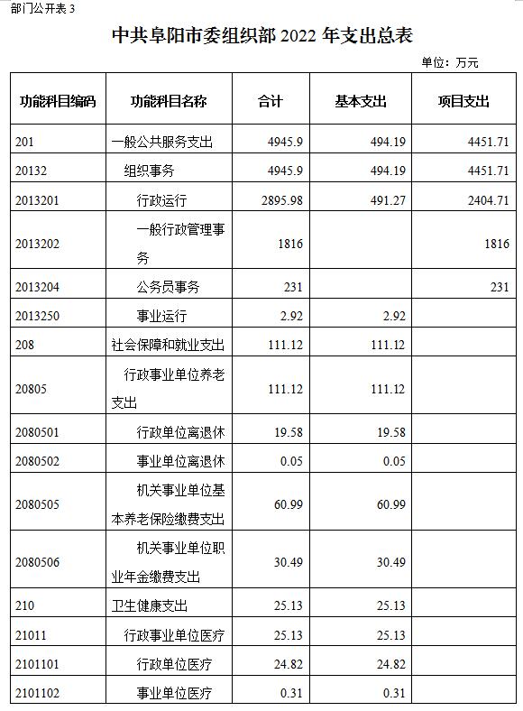 3.中共阜陽(yáng)市委組織部2022年支出總表