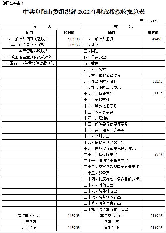 4.中共阜陽(yáng)市委組織部2022年財(cái)政撥款收支總表