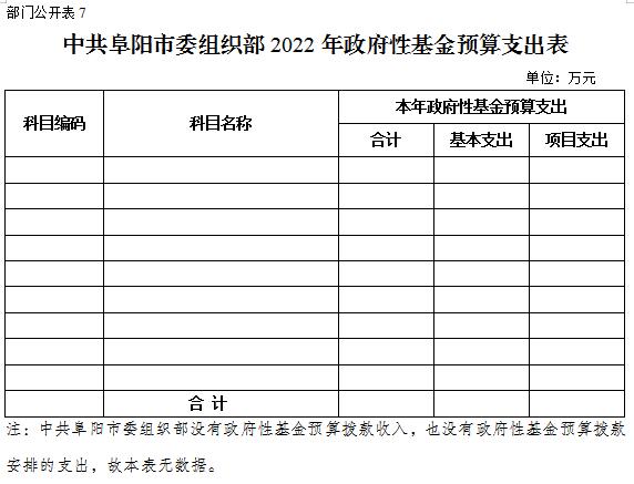 7.中共阜陽(yáng)市委組織部2022年政府性基金預(yù)算支出表