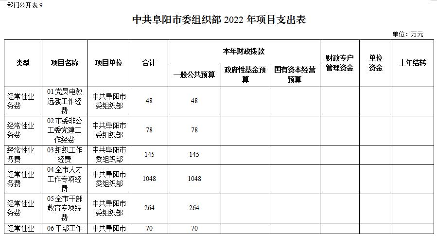 9.中共阜陽(yáng)市委組織部2022年項(xiàng)目支出表