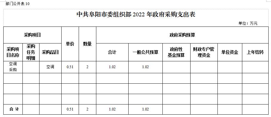 10.中共阜陽(yáng)市委組織部2022年政府采購(gòu)支出表