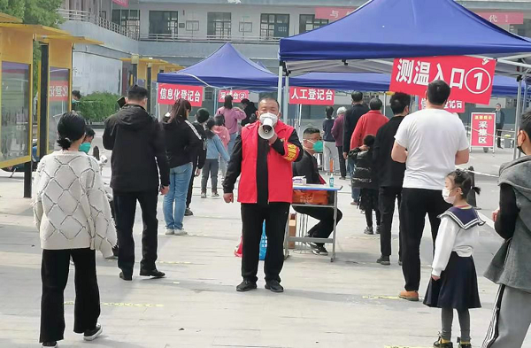 “同志你好!請出示通行證、健康碼、行程碼”。每到有車輛抵達(dá)S202田集卡點(diǎn),黨員志愿者就會快步上前查驗(yàn)車輛人員信息。田集卡點(diǎn)是阜南北大門,4月5日卡點(diǎn)設(shè)置以來,在縣級領(lǐng)導(dǎo)的帶領(lǐng)下,交通、衛(wèi)健、交警、田集等部門23名黨員干部和黨員志愿者,迅速成立了臨時黨支部,樹起黨旗、胸佩黨徽、臂掛袖章,分兩班輪換值守,每天檢測車輛1000輛左右。對于有通行證的,嚴(yán)格落實(shí)“雙碼聯(lián)掃”,仔細(xì)測量車主體溫,查看車內(nèi)有無其他乘客,對于沒有通行證的車輛人員進(jìn)行勸返,最大程度降低疫情蔓延風(fēng)險。
