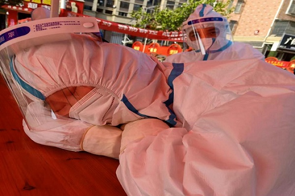 “女兒從4月3日起就在鹿城鎮(zhèn)阜東小區(qū)負(fù)責(zé)核酸檢測采樣,4月7日阜南縣鹿城鎮(zhèn)開展第三輪核酸檢測。拍照片那會兒是他們中午休息時間,女兒那幾天身體不好,我讓她請假,她不肯,并說疫情就是命令,不能臨陣脫逃。擔(dān)心她堅持不下來,我就去看看她,到地方時發(fā)現(xiàn)疲憊的她睡著了,就拍了這張照片離開了?!睆垥粤嵴f,拍照片時,站在女兒旁邊的維持秩序的城管執(zhí)法局人員當(dāng)時不讓我拍,說“你看她累那么狠,你咋還去打擾她”,要不是我跟他解釋說是我女兒,照片真拍不成。