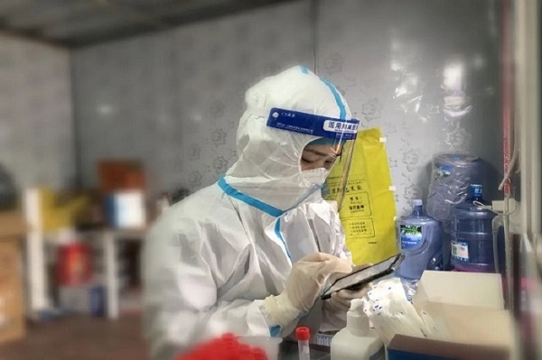 在潁上東高速公路口的臨時核酸檢測站里,大家一身大白從頭到腳捂得嚴(yán)嚴(yán)實實,想找一個人真的很難,但一問到那個個子高高愛笑的人,大家第一個想到的就是“開心果”朱雨欣。在工作一年的時間里,她先后前往安慶、六安進(jìn)行醫(yī)護(hù)支援。她說:“身著“大白”就是一名在疫情防控最前沿的戰(zhàn)士,很自豪經(jīng)歷并參與了這場沒有硝煙的戰(zhàn)斗?!?/span>