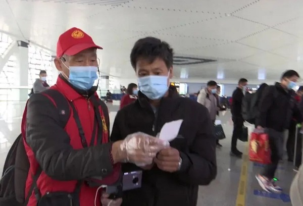 溫馨的畫面中,一位銀發(fā)志愿者身背照相機(jī),手持小喇叭,不停跑前跑后……65歲了,志愿者郭金山依然堅(jiān)守在臨泉縣疫情防控一線,既當(dāng)服務(wù)旅客的志愿者,也是留存感人瞬間的“記錄人”。