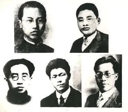 青年團第一屆中央執(zhí)行委員會委員。上左為施存統(tǒng)(書記),右為張?zhí)?,下左為高君宇,中為蔡和森,右為俞秀?/span>