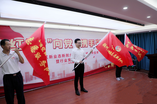 為深入貫徹習(xí)近平總書記重要指示批示精神,認(rèn)真落實(shí)省委、市委新業(yè)態(tài)新就業(yè)群體黨建工作有關(guān)要求,在喜迎中國(guó)共產(chǎn)黨成立101周年之際,潁州區(qū)委組織部、區(qū)委非公工委于6月30日上午在鼓樓街道西關(guān)外社區(qū)成功舉辦“紅‘新’向黨、攜手興阜”潁州區(qū)新業(yè)態(tài)新就業(yè)群體黨組織集中授牌暨行業(yè)黨委揭牌儀式。市委組織部城市組織科科長(zhǎng)、市委非公辦主任張宇,潁州區(qū)委常委、組織部長(zhǎng)賀瑾,區(qū)委組織部副部長(zhǎng)、區(qū)委非公工委書記王俊,互聯(lián)網(wǎng)、外賣送餐等行業(yè)黨委書記,各街道、區(qū)直其它單位相關(guān)負(fù)責(zé)人,部分新業(yè)態(tài)公司黨支部黨員及企業(yè)代表共60余人參加活動(dòng)。