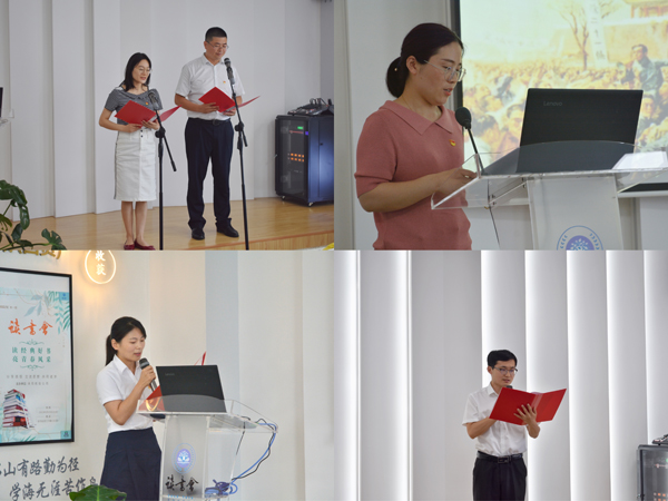 在交流討論環(huán)節(jié)上,市委組織部朱威、符晶晶以詩朗誦《我的祖國》開場,聲情并茂、感人至深,用最動(dòng)聽的聲音表達(dá)了對祖國真摯的愛,《誰是最可愛的人》《一封紅色家書》讓大家在吟誦中深刻的接受了一次思想的洗禮,黨性的教育。讀書分享及主題發(fā)言在輕松愉悅的誦讀氛圍中拉開帷幕,張強(qiáng)、謝娜等八位分享人分別以《蘇東坡傳》《人間詞話》《江城》、讀黨史的瞬間及感悟、《置身事內(nèi)》《女神之再生》、主題暢談等為大家?guī)砹瞬煌愋偷奈膶W(xué)作品推薦分享和交流發(fā)言,一起品味“書香”,分享“閱讀”的樂趣,感受著文字帶來的溫度與力量,享受一場視聽盛宴和精神大餐。