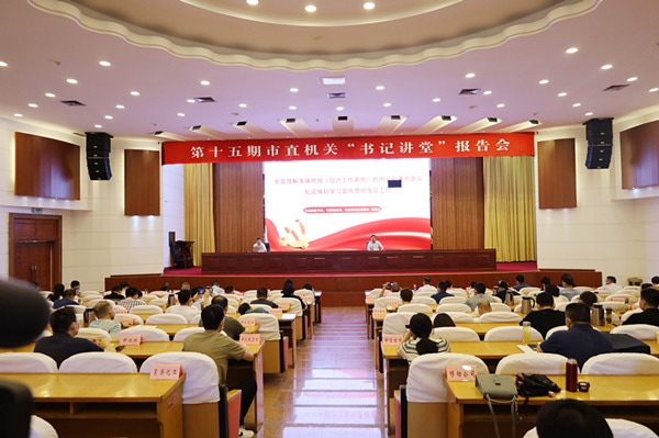 為認(rèn)真學(xué)習(xí)貫徹落實(shí)《信訪工作條例》及全省“一改兩為”會(huì)議精神,持續(xù)推進(jìn)“我為群眾辦實(shí)事”實(shí)踐活動(dòng),不斷將創(chuàng)建學(xué)習(xí)型機(jī)關(guān)活動(dòng)引向縱深,7月26日下午,第十五期市直機(jī)關(guān)“書記講堂”報(bào)告會(huì)在市政府一樓會(huì)議室舉辦,邀請(qǐng)市委副秘書長(zhǎng),市委信訪局、市政府信訪局局長(zhǎng)楊進(jìn)山作報(bào)告。市直工委書記李濤主持報(bào)告會(huì)。市直及中央、省駐阜直屬黨組織負(fù)責(zé)人和黨務(wù)干部,市直微宣講團(tuán)成員,市直工委黨員干部等近150人參加。
