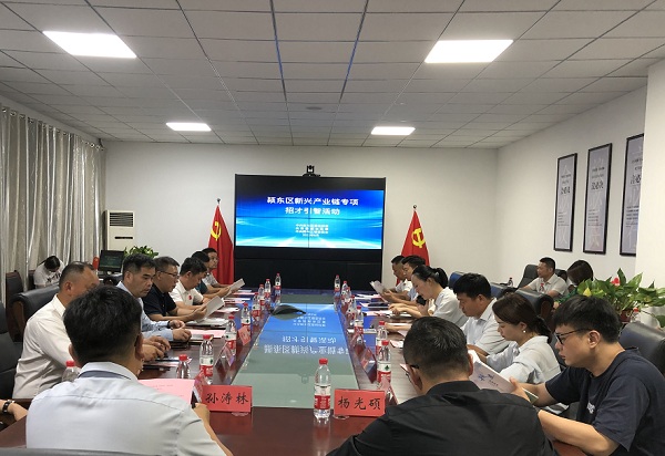 陳永剛帶領(lǐng)青年創(chuàng)業(yè)協(xié)會(huì)企業(yè)家們一行先后觀摩考察了潁東區(qū)“雙招雙引”服務(wù)中心、瓦大番茄谷,并在瓦大番茄谷會(huì)議室召開(kāi)潁東區(qū)新興產(chǎn)業(yè)鏈專項(xiàng)“招才引智”推介會(huì)。推介會(huì)上,王靜就潁東區(qū)區(qū)情及人才政策進(jìn)行了宣傳推介。隨后,圍繞著企業(yè)項(xiàng)目、人才等方面合作進(jìn)行了交流。