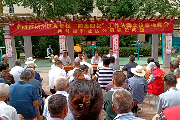 潁州區(qū)針對(duì)城市社區(qū)駐區(qū)單位多、物業(yè)小區(qū)多、商務(wù)樓宇多,群眾訴求多樣、社區(qū)治理任務(wù)繁重等情況,在城市基層治理中建立了“網(wǎng)格管事、五老調(diào)事、支部說(shuō)事、群眾議事”、保障群眾對(duì)社區(qū)事務(wù)充分享有“知情權(quán)、監(jiān)督權(quán)、參與權(quán)和決策權(quán)”的“四事四權(quán)”工作法,走出一條符合基層實(shí)際、以人為本的治理模式。
