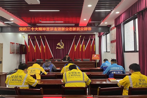 爭做講學“先標兵”,增添宣傳“新”力量。依托社區(qū)“潁心驛站”設(shè)置新就業(yè)群體“學習角”,引導新就業(yè)群體將休息的碎片時間轉(zhuǎn)化為“充電的黃金時段”,全面準確掌握黨的二十大精神實質(zhì)。黨員外賣騎手化身二十大精神“小廣播”,隨時講述二十大精神和學習感悟給身邊群眾聽、給服務(wù)對象聽,化“被動聽”為“主動講”,進一步推動黨的二十大精神在全縣快速“走紅”。目前已有30余名新業(yè)態(tài)新就業(yè)群體黨員參與“進樓入戶”微宣傳,覆蓋群眾2000余人。