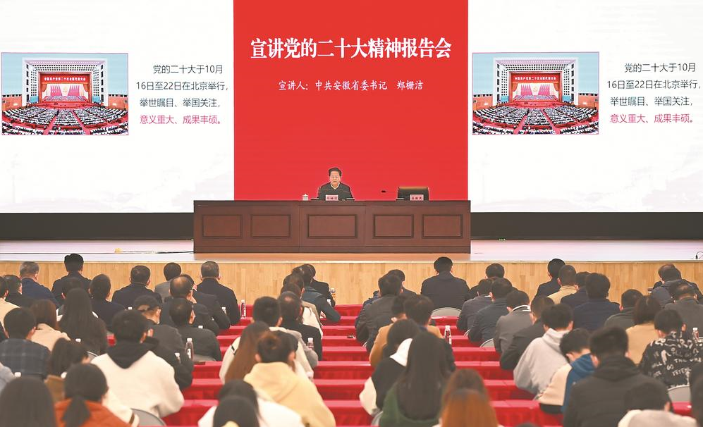 省領導張韻聲、王翠鳳和安徽大學420余名師生現(xiàn)場聆聽了宣講報告。與會師生普遍感到,宣講報告主題鮮明、內容翔實、視野開闊,聽后更加深入理解了黨的二十大蘊含的重要思想、重要觀點、重大戰(zhàn)略、重大舉措,更加深刻認識到黨和國家事業(yè)取得歷史性成就、發(fā)生歷史性變革的最根本原因在于習近平總書記掌舵領航,在于習近平習近平新時代中國特色社會主義思想科學指引。大家一致表示,要更加緊密地團結在以習近平同志為核心的黨中央周圍,不負韶華、不負時代、不負人民,讓青春在全面建設社會主義現(xiàn)代化國家的火熱實踐中綻放絢麗之花。