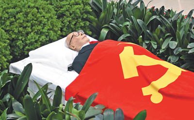 12月5日,江澤民同志的遺體安臥在鮮花翠柏叢中,身上覆蓋著鮮紅的中國共產(chǎn)黨黨旗。新華社記者 謝環(huán)馳 攝