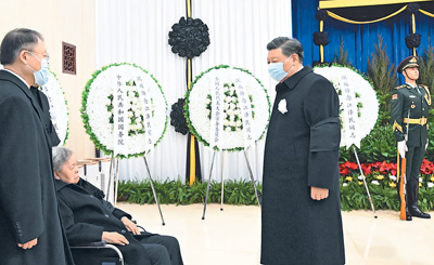 12月5日,江澤民同志的遺體在北京火化。這是習近平向江澤民同志的夫人王冶坪和親屬表示深切慰問。新華社記者 李學仁 攝