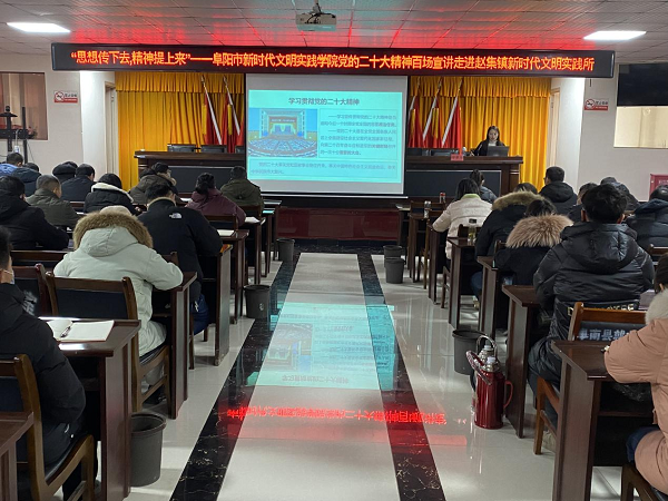 豐富學(xué)習(xí)方式,拓寬學(xué)習(xí)的深度廣度。分別邀請黨的二十大精神縣委宣講團和阜陽市新時代文明實踐學(xué)院宣講團到趙集鎮(zhèn)開展“思想傳下去精神提上來”黨的二十大精神宣講活動,深入分析黨的二十大精神學(xué)習(xí)的必要性,提供了學(xué)習(xí)的途徑和文獻,以及如何運用黨的二十大精神指導(dǎo)實踐。