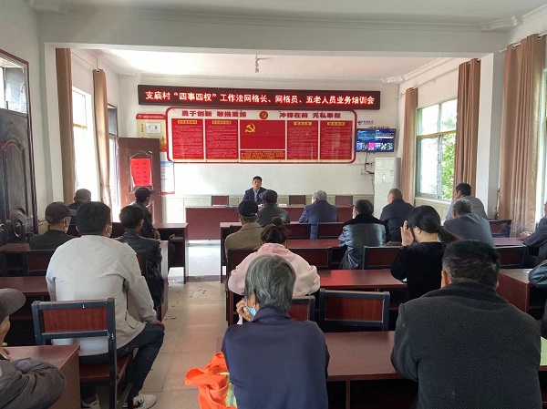 二是加強隊伍配備,提升議事能力。建立由老黨員、老干部、老教師、老戰(zhàn)士、老模范為主體的“五老”村級調(diào)解員隊伍和網(wǎng)格員隊伍。截至目前,趙集鎮(zhèn)三個試點村共劃分38個網(wǎng)格,共有網(wǎng)格員40人,“五老”隊伍70人,建立“五老”人才庫約310人。對網(wǎng)格員、五老人員進行公示,出臺網(wǎng)格員管理辦法,先后培訓(xùn)網(wǎng)格員50余人次,提高人民調(diào)解員隊伍處置各種矛盾糾紛的綜合能力,確保隊伍建設(shè)堅強有力,為“四事四權(quán)”工作法的實施提供了人才保障。