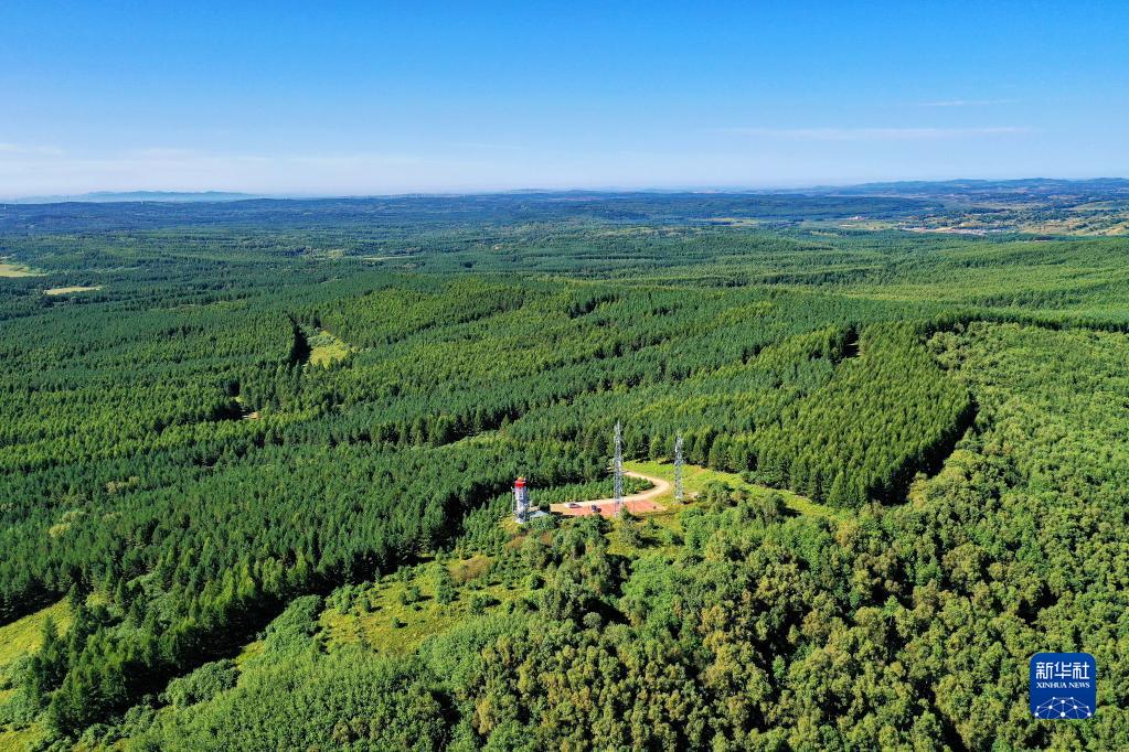 這是2021年8月23日拍攝的河北塞罕壩機(jī)械林場內(nèi)的望海樓(無人機(jī)照片)。新華社記者 牟宇 攝