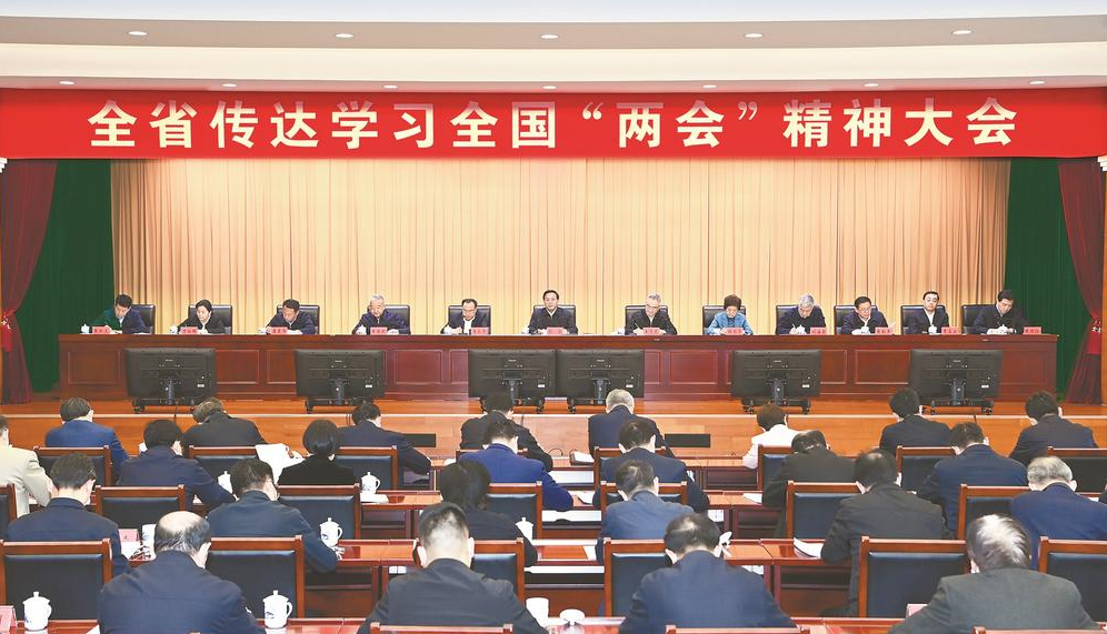 3月15日,省委召開全省傳達(dá)學(xué)習(xí)全國兩會精神大會。省委書記韓俊主持會議并傳達(dá)習(xí)近平總書記在全國兩會期間的重要講話精神,安排我省貫徹落實工作。記者 楊竹 攝