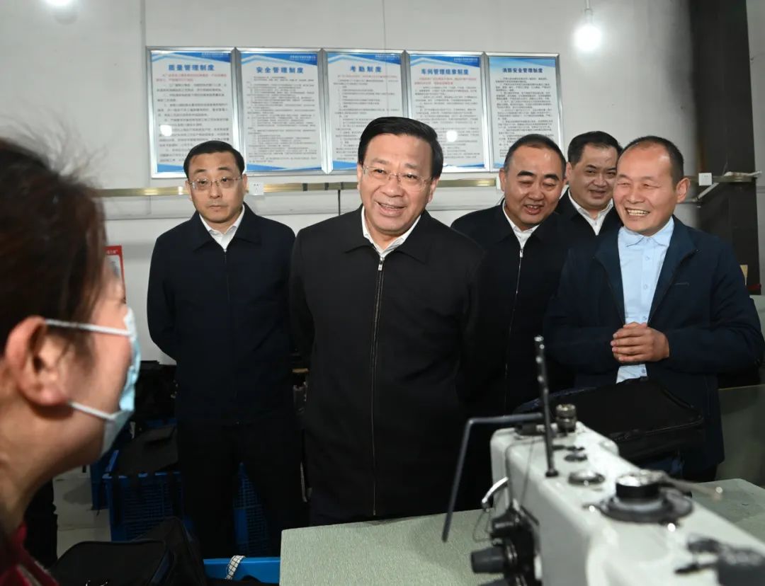 阜南縣紅亮箱包公司位于蒙洼蓄洪區(qū)內(nèi),習(xí)近平總書記曾親臨企業(yè)考察。韓俊來到公司,認(rèn)真察看扶貧車間和箱包產(chǎn)品,與企業(yè)負(fù)責(zé)人、車間工人親切交談,“吸納多少本地群眾就業(yè)?”“訂單主要來自哪里?”“一年收入多少?”得知企業(yè)近兩年不斷開拓市場,擴(kuò)大生產(chǎn)規(guī)模,帶動(dòng)周邊群眾就近就地就業(yè),實(shí)現(xiàn)收入穩(wěn)定,韓俊十分滿意,他說,我們要牢記習(xí)近平總書記的殷殷囑托,永葆為民情懷,落實(shí)好鞏固拓展脫貧攻堅(jiān)與鄉(xiāng)村振興有效銜接各項(xiàng)政策,加大對(duì)扶貧企業(yè)的支持力度,通過就業(yè)創(chuàng)業(yè)持續(xù)增加群眾收入。