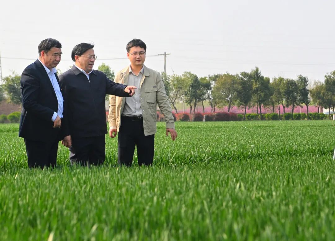 糧食安全是“國之大者”。2022年6月27日,習(xí)近平總書記給太和縣種糧大戶徐淙祥親切回信、寄予殷切期望。下午,韓俊驅(qū)車來到張槐村淙祥現(xiàn)代農(nóng)業(yè)種植專業(yè)合作社,與徐淙祥面對(duì)面聊種植、話農(nóng)業(yè),深入機(jī)井房和小麥高產(chǎn)示范田,察看小麥長勢、灌溉設(shè)備和田間智能監(jiān)測。韓俊強(qiáng)調(diào),農(nóng)業(yè)也是高科技產(chǎn)業(yè),既要追求產(chǎn)量,更要注重效益和質(zhì)量。要堅(jiān)持科技強(qiáng)農(nóng),積極應(yīng)用現(xiàn)代農(nóng)業(yè)科技,打造優(yōu)質(zhì)化、專用化、綠色化、數(shù)字化、品牌化農(nóng)業(yè)。要充分發(fā)揮種糧大戶規(guī)模經(jīng)營優(yōu)勢,帶動(dòng)更多小農(nóng)戶多種糧種好糧、多掙錢得實(shí)惠。要完善和落實(shí)各項(xiàng)支持政策,大力加強(qiáng)高標(biāo)準(zhǔn)農(nóng)田建設(shè),嚴(yán)格招投標(biāo)和施工監(jiān)管,構(gòu)建現(xiàn)代農(nóng)業(yè)產(chǎn)業(yè)體系、生產(chǎn)體系、經(jīng)營體系,為維護(hù)國家糧食安全作出更大貢獻(xiàn)。