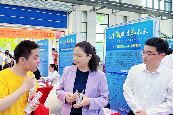 4月20日,由阜陽(yáng)市委組織部主辦、界首市委組織部協(xié)辦的2023年春季“高校直通車”暨安徽工程大學(xué)專場(chǎng)招聘活動(dòng)成功舉辦。此次活動(dòng)共有招才引智推介會(huì)、校園專場(chǎng)招聘會(huì)和校地企合作對(duì)接會(huì)等環(huán)節(jié)。安徽工程大學(xué)黨委委員、宣傳部長(zhǎng)孫浩然、國(guó)際工程師學(xué)院管委會(huì)主任魏長(zhǎng)順、材料科學(xué)與工程學(xué)院黨委書記郭廣春、化學(xué)與環(huán)境工程學(xué)院黨委書記章兵,阜陽(yáng)市委組織部副部長(zhǎng)韓芳,界首市委常委、組織部長(zhǎng)周亞辰等參加。