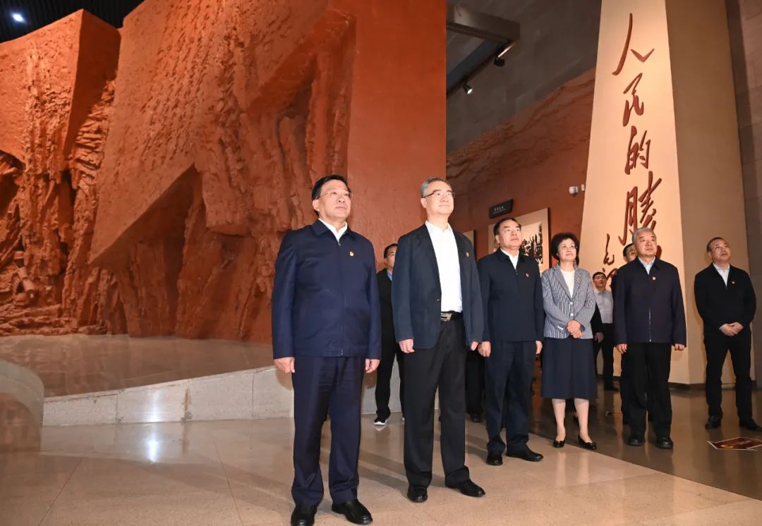 位于巢湖之濱的渡江戰(zhàn)役紀(jì)念館,是國(guó)內(nèi)規(guī)模最大、史料最全的紀(jì)念渡江戰(zhàn)役歷史專題場(chǎng)館。上午8時(shí)30分許,韓俊等來(lái)到渡江戰(zhàn)役紀(jì)念館廣場(chǎng),滿懷崇敬之情瞻仰渡江戰(zhàn)役總前委群像,深切緬懷革命先輩的豐功偉績(jī)。步入紀(jì)念館,韓俊等沿著習(xí)近平總書(shū)記考察路線,依次參觀“戰(zhàn)前形勢(shì)”“戰(zhàn)役準(zhǔn)備”“突破江防”“戰(zhàn)役勝利”“人民支前”“英烈業(yè)績(jī)”等展廳,認(rèn)真聽(tīng)取講解、不時(shí)停下腳步、了解史實(shí)細(xì)節(jié),在一張張歷史圖片、一件件文獻(xiàn)實(shí)物、一個(gè)個(gè)文字記錄中重溫那段風(fēng)雨如磐的歲月。隨后,韓俊等認(rèn)真觀看了習(xí)近平總書(shū)記考察渡江戰(zhàn)役紀(jì)念館的視頻資料,他強(qiáng)調(diào),要深刻領(lǐng)會(huì)習(xí)近平總書(shū)記“渡江戰(zhàn)役的勝利是靠老百姓用小船劃出來(lái)的”“為什么歷史和人民選擇了中國(guó)共產(chǎn)黨,為什么必須堅(jiān)持走中國(guó)特色社會(huì)主義道路、實(shí)現(xiàn)中華民族偉大復(fù)興興”等重要論述,引導(dǎo)廣大黨員干部衷心擁護(hù)“兩個(gè)確立”、忠誠(chéng)踐行“兩個(gè)維護(hù)”,堅(jiān)定不移沿著習(xí)近平總書(shū)記指引的方向,把革命先輩開(kāi)創(chuàng)的偉大事業(yè)不斷推向前進(jìn)。在渡江戰(zhàn)役烈士名錄廳,韓俊駐足凝視,指出,安徽是一片紅色的土地,今天的幸福生活是千千萬(wàn)萬(wàn)革命烈士用生命和鮮血換來(lái)的,我們一定要講好紅色故事、傳承紅色基因,把紅色江山守護(hù)好、建設(shè)好。