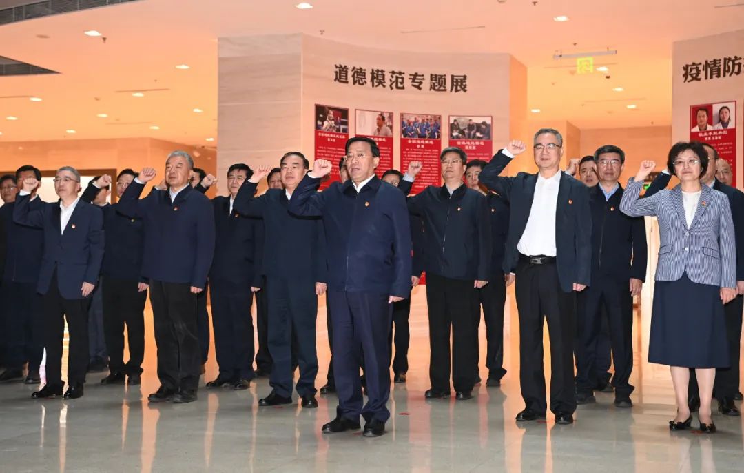 在一樓大廳,面向鮮紅的中國(guó)共產(chǎn)黨黨旗,韓俊領(lǐng)誓,其他領(lǐng)導(dǎo)同志高舉右拳,鄭重宣誓,鏗鏘有力的誓言回蕩大廳、激蕩人心,表達(dá)了忠誠(chéng)于黨、忠誠(chéng)于人民、忠誠(chéng)于馬克思主義的堅(jiān)定信仰,展示了矢志不渝、接續(xù)奮斗的堅(jiān)定信念,彰顯了擔(dān)當(dāng)作為、奮勇前進(jìn)的堅(jiān)定信心。
