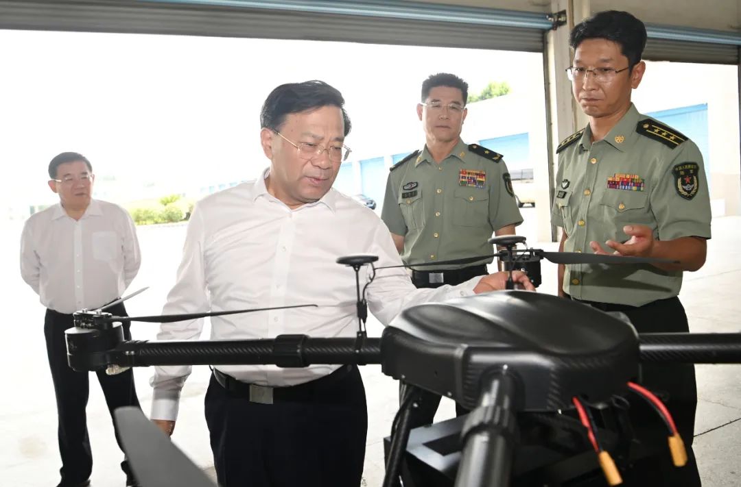 陸軍炮兵防空兵學(xué)院于2017年調(diào)整組建,前身是毛主席親自創(chuàng)辦的我軍第一所炮兵學(xué)?!影才谛?。來到學(xué)院西校區(qū)無人機(jī)訓(xùn)練場,韓俊實(shí)地察看無人機(jī)裝備,觀摩無人蜂群演示,看望慰問部隊官兵代表,聽取有關(guān)情況匯報,詳細(xì)詢問大家日常訓(xùn)練、生活保障等情況,勉勵大家牢牢把握戰(zhàn)斗力這個唯一的根本的標(biāo)準(zhǔn),砥礪戰(zhàn)斗精神,錘煉過硬作風(fēng),大抓實(shí)戰(zhàn)化軍事訓(xùn)練,加快提高部隊現(xiàn)代化水平,鍛造召之即來、來之能戰(zhàn)、戰(zhàn)之必勝的精兵勁旅。他說,當(dāng)前安徽正處于厚積薄發(fā)、動能強(qiáng)勁、大有可為的上升期關(guān)鍵期,希望駐皖部隊一如既往關(guān)心支持地方改革發(fā)展穩(wěn)定,積極投身遂行搶險救災(zāi)、軍民融合發(fā)展、維護(hù)社會穩(wěn)定等各項任務(wù),為全面建設(shè)現(xiàn)代化美好安徽作出更大貢獻(xiàn)。