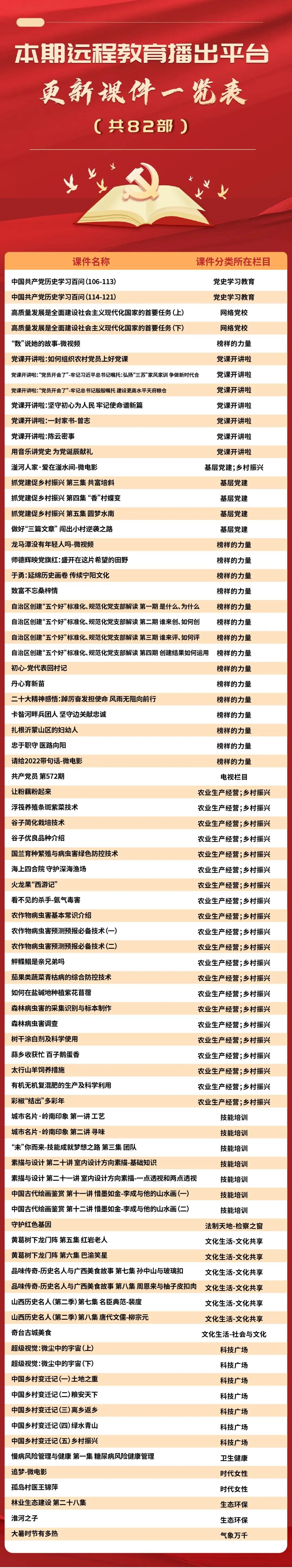 為進一步提升黨員遠(yuǎn)程教育學(xué)用結(jié)合實效,幫助全省基層遠(yuǎn)程教育終端站點更便捷地掌握課件資源庫內(nèi)容,省黨員電教中心通過安徽先鋒微訊定期發(fā)布精品節(jié)目推薦以及最新上傳更新節(jié)目單,請通過遠(yuǎn)程教育終端站點或安徽先鋒網(wǎng)-先鋒網(wǎng)視點播收看。