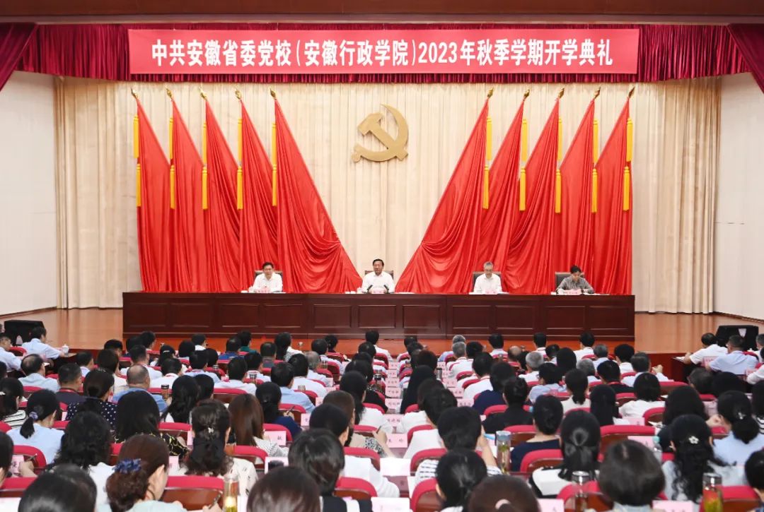 9月7日上午,省委黨校(安徽行政學(xué)院)舉行2023年秋季學(xué)期開學(xué)典禮。省委書記韓俊出席并講話。他強調(diào),要深入學(xué)習(xí)貫徹習(xí)近平總書記關(guān)于干部隊伍建設(shè)的重要論述,自覺按照“忠專實”“勤正廉”的要求,努力成長為堪當(dāng)重任的高素質(zhì)干部,在譜寫中國式現(xiàn)代化安徽篇章中展現(xiàn)新面貌、實現(xiàn)新作為。省委常委、宣傳部部長陳舜,省委常委、秘書長、政法委書記張韻聲出席,省委常委、組織部部長丁向群主持。