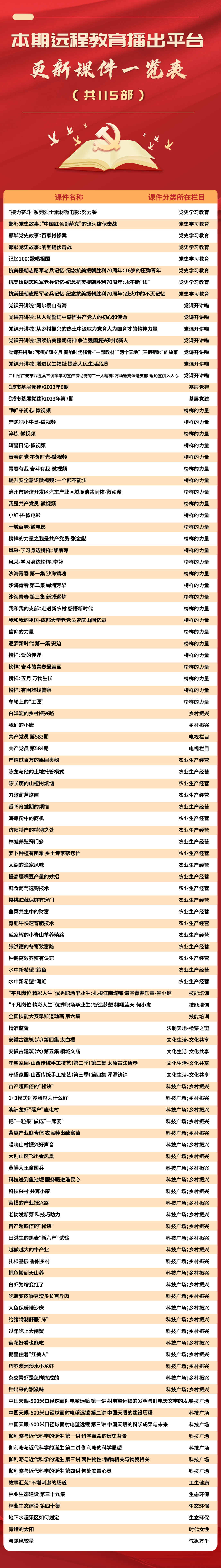 為進一步提升黨員遠程教育學用結合實效,幫助全省基層遠程教育終端站點更便捷地掌握課件資源庫內容,省委組織部黨員教育中心通過安徽先鋒微訊定期發(fā)布精品節(jié)目推薦以及最新上傳更新節(jié)目單,請通過遠程教育終端站點或安徽先鋒網-先鋒網視點播收看。