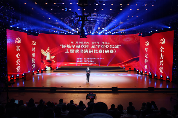為深入學(xué)習(xí)貫徹習(xí)近平習(xí)近平新時(shí)代中國(guó)特色社會(huì)主義思想和黨的二十大精神,持續(xù)深化市直創(chuàng)建學(xué)習(xí)型機(jī)關(guān)活動(dòng),12月27日下午,由市直機(jī)關(guān)工委主辦、阜陽(yáng)新華書(shū)店協(xié)辦、阜陽(yáng)廣播電視臺(tái)承辦的第八屆市直機(jī)關(guān)“讀書(shū)月”活動(dòng)之“錘煉堅(jiān)強(qiáng)黨性 筑牢對(duì)黨忠誠(chéng)”主題讀書(shū)演講暨征文比賽頒獎(jiǎng)儀式在廣播電視臺(tái)一樓演播大廳隆重舉辦。市直機(jī)關(guān)160余名黨員干部現(xiàn)場(chǎng)觀賽?;顒?dòng)在網(wǎng)絡(luò)平臺(tái)進(jìn)行了同步直播,近4萬(wàn)名觀眾在線(xiàn)觀看。