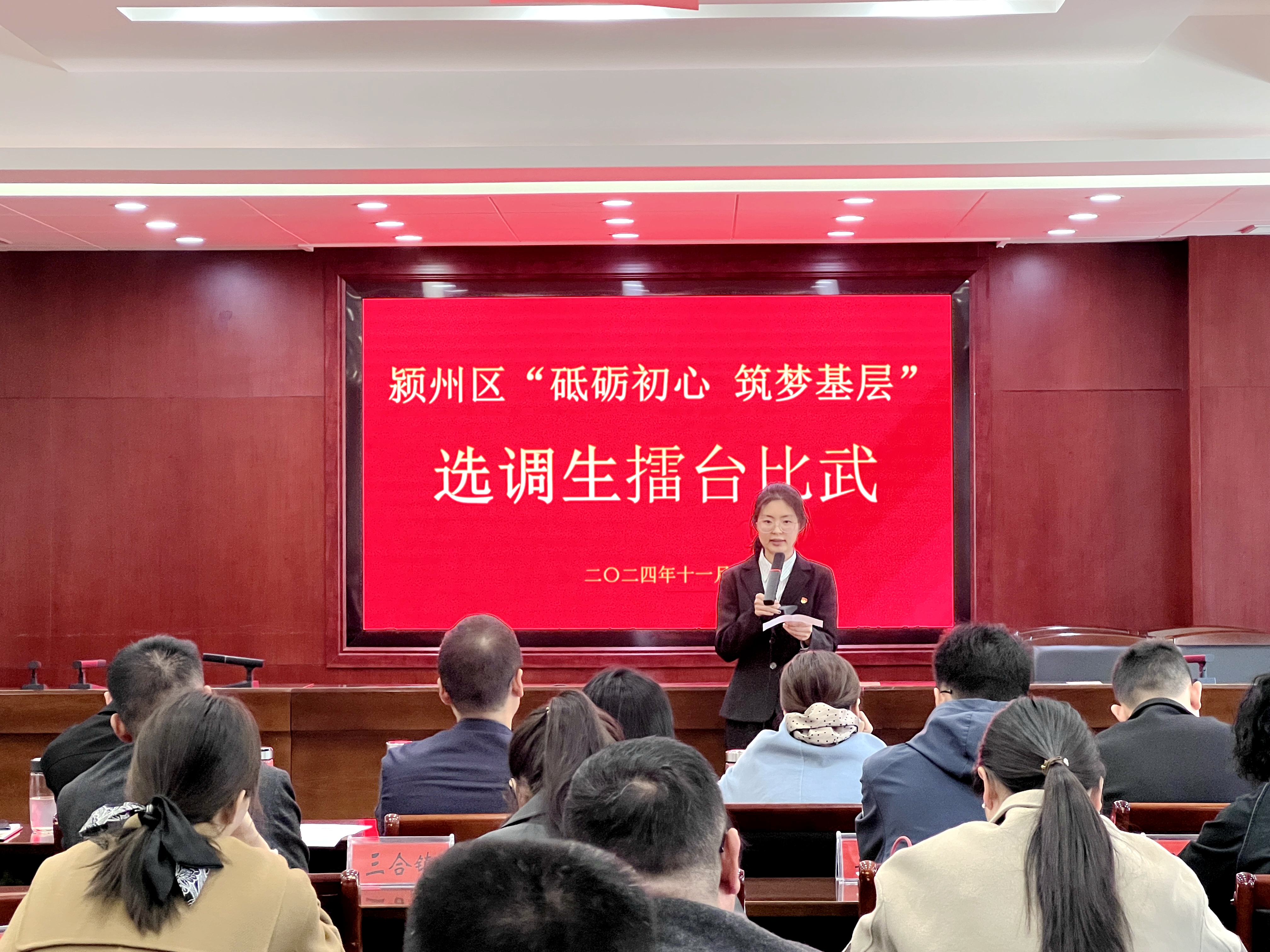 為切實增強到村任職選調(diào)生基層鍛煉實效,引導選調(diào)生扎根基層、干事創(chuàng)業(yè),11月6日,潁州區(qū)舉辦了“砥礪初心 筑夢基層”選調(diào)生擂臺比武活動。區(qū)委組織部副部長王俊出席并致辭,區(qū)農(nóng)業(yè)農(nóng)村局、團區(qū)委分管負責同志,區(qū)委組織部相關(guān)科室負責人、部分鄉(xiāng)鎮(zhèn)街道組織委員、村黨組織書記現(xiàn)場觀摩。